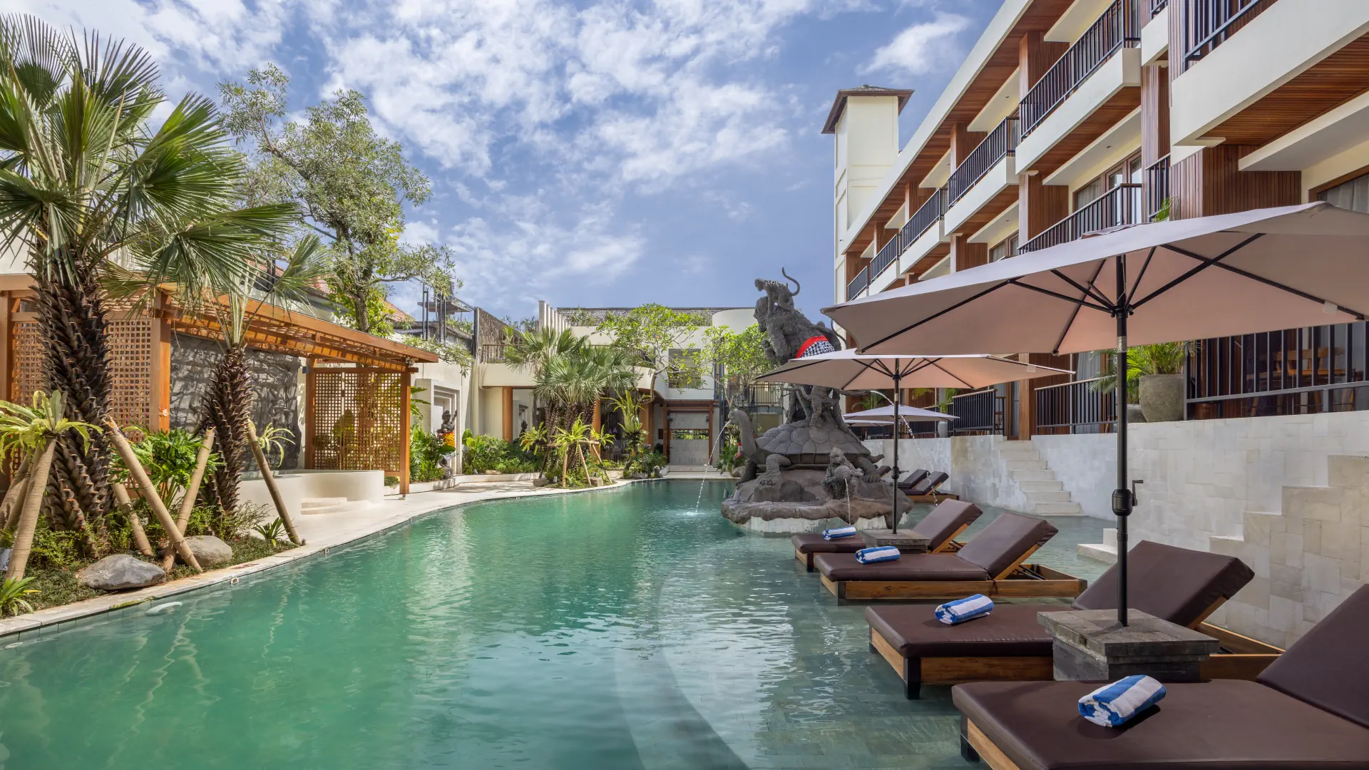 Anumana Ubud is a boutique hotel located mere metres from Bali's sacred Monkey Forest in the cultural village of Ubud. It is a contemporary property that blends artistic Balinese accents with essential facilities to anticipate the needs of groups and leisure travellers. A total of just 42 stylish rooms have been designed to surround the refreshing waters of a lagoon-inspired swimming pool.